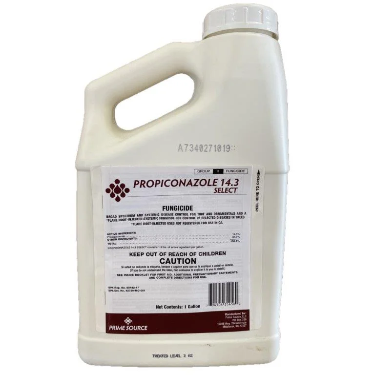 Propiconazole 14.3 Select is a systemic fungicide that will help control turf and ornamental diseases such as dollar spot, brown patch, anthracnose, powdery mildew, summer patch, gray leafspot, zoysia patch, and more. It contains 14.3% Propiconazole as its active ingredient and it provides preventive and curative control of plant fungal diseases. It works by stopping fungal growth at an early stage so the effect of the disease will be reduced. This liquid formulation guarantees to deliver excellent residual control with low use rates. It can be used on golf courses, commercial lawns, residential lawns, landscape ornamentals, and nurseries. Propiconazole 14.3 Select is a systemic fungicide for use on turfgrasses for the control of dollar spot (Sclerotinia homoeocarpa), brown patch (Rhizoctonia solani), anthracnose (Colletotrichum graminicola), red thread (Laetisaria fuciformis), pink patch (Limonomy-ces roseipellis), rust (Puccinia graminis), powdery mildew (Erysiphe graminis), stripe smut (Ustilago striiformis and Urocystis agropyri), summer patch (Magnaporthe poae), necrotic ring spot (Leptosphaeria korrae), spring dead spot (Leptosphaeria korrae, Leptosphaeria narmari, Ophiosphaerella herpotricha, Gaeumannomyces graminis), take-all patch (Gaeumannomyces graminis), leafspot (Bipolaris spp., Drechslera spp.), gray leafspot (Pyricularia grisea), pink snowmold (Microdochium nivale), Fusarium patch (Fusarium nivale), gray snowmold (Typhula spp.), yellow patch (Rhizoctonia cerealis), and zoysia patch (Rhizoctonia solani). Propiconazole 14.3 Select also controls numerous diseases on ornamentals and other landscape and nursery plantings. It controls powdery mildews, rusts, leafspots, scabs, and blights. Refer to the appropriate section for specified diseases and plants.