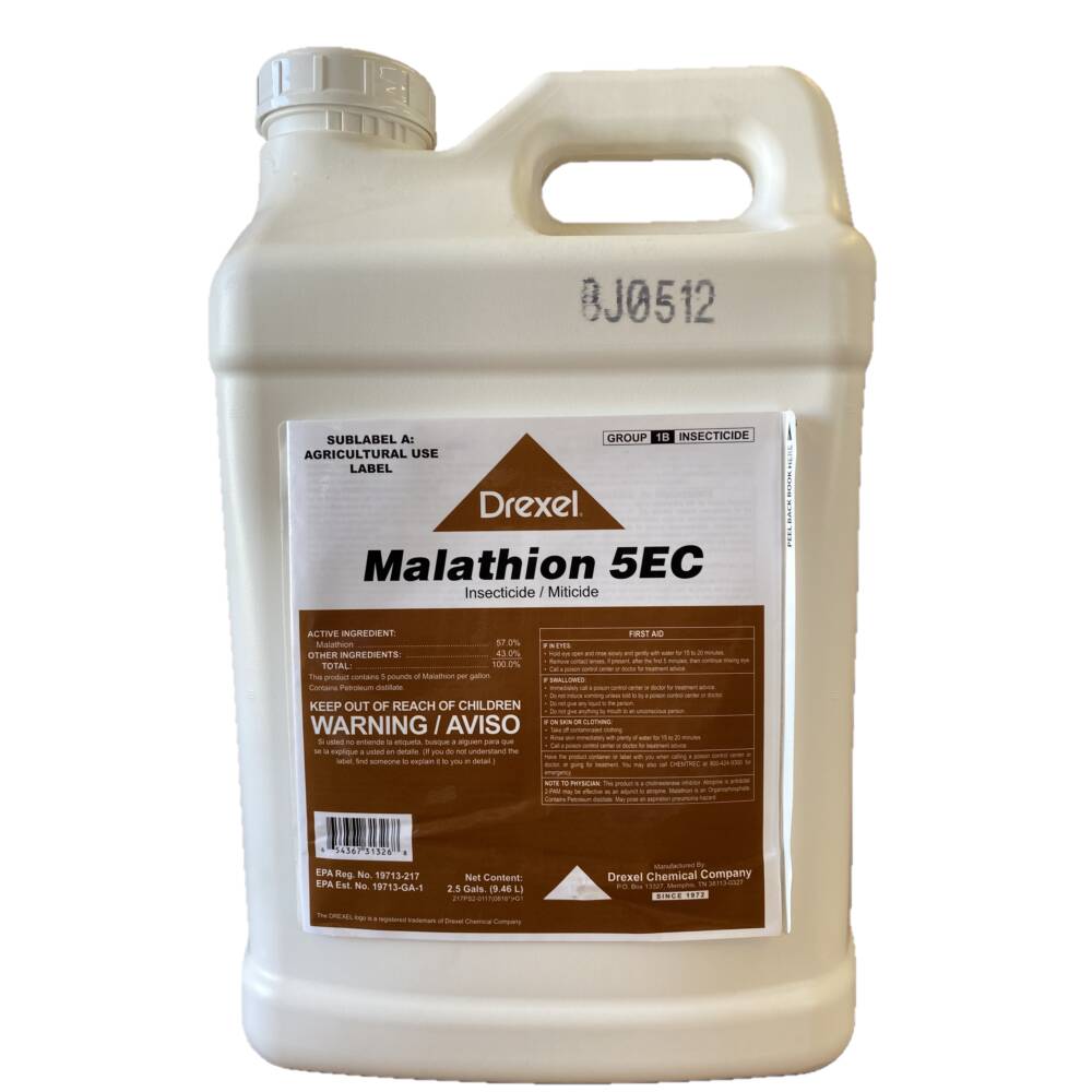 Malathion 5EC Insecticide is an insecticide/miticide used to control pests on a broad range of Crop and Non-crop applications. Malathion 5EC Insecticide Features and Benefits Contains 5 pounds of Malathion per gallon For use in aerial, ground and certain chemigation applications Sub-labeled as a mosquitocide Registered for spot treatment applications in residential lawns and gardens