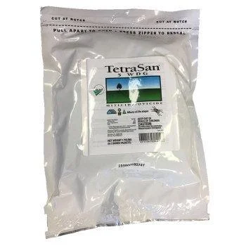 With contact and translaminar movement, TetraSan controls spider mites on the underside of leaves, even when it’s difficult to get good under-leaf spray coverage. TetraSan has a unique mode of action, offers residual control up to five weeks and is safe to most beneficials. TetraSan 5 WDG is a miticide that controls major tetranychid mite species in egg and nymph stages of growth. Foliar applications of TetraSan 5 WDG can be made for control of spider mites infesting indoor (greenhouses, lathhouses, shadehouses and interiorscapes) and outdoor ornamentals, including flowering and foliage crops, ground covers, shrubs and ornamental trees, non-bearing fruit and nut trees, and Christmas trees. TetraSan 5 WDG may be used in ornamental production areas and in the landscape in residential and commercial areas. MULTIPLE PACKAGING This bag contains multiple water soluble packets of TetraSan 5 WDG. Do not handle the packets with wet gloves or allow the packets to become wet prior to addition to spray tank. Do not break open packets. Each packet contains 2 oz (1/8 lb) of TetraSan 5 WDG. If all packets are not used, close and reseal outer container to protect remaining packet(s).